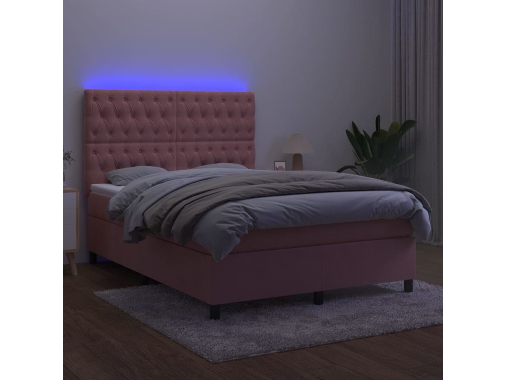 vidaXL Posteľný rám boxsping s matracom a LED ružový 140x200 cm zamat