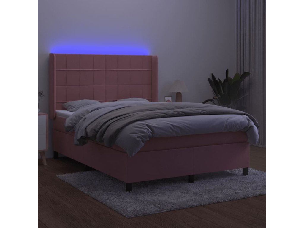 vidaXL Posteľný rám boxsping s matracom a LED ružový 140x200 cm zamat