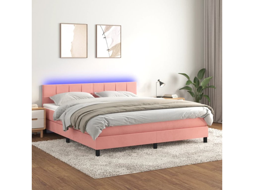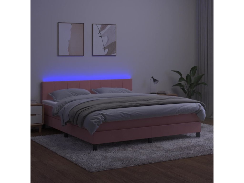 vidaXL Posteľný rám boxsping s matracom a LED ružový 160x200 cm zamat