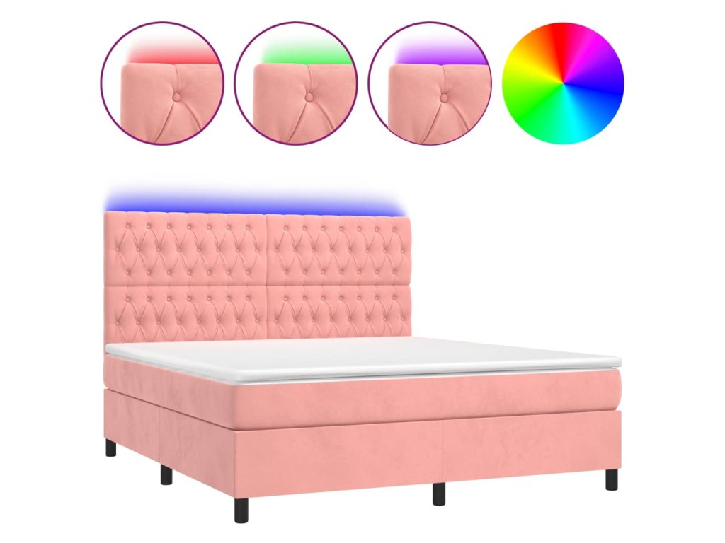 vidaXL Posteľný rám boxsping s matracom a LED ružový 180x200 cm zamat