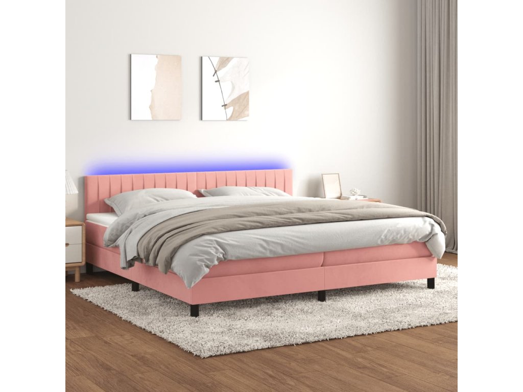 vidaXL Posteľný rám boxsping s matracom a LED ružový 200x200 cm zamat