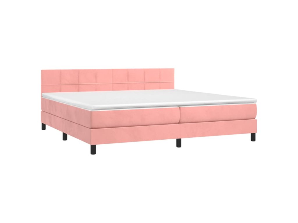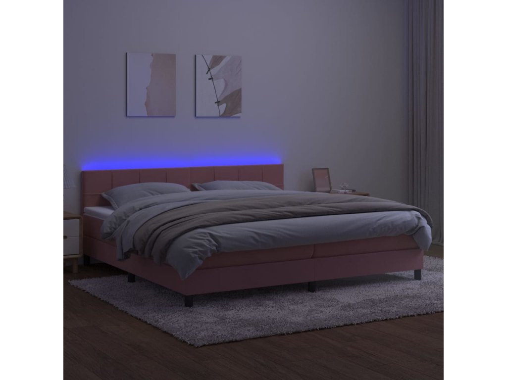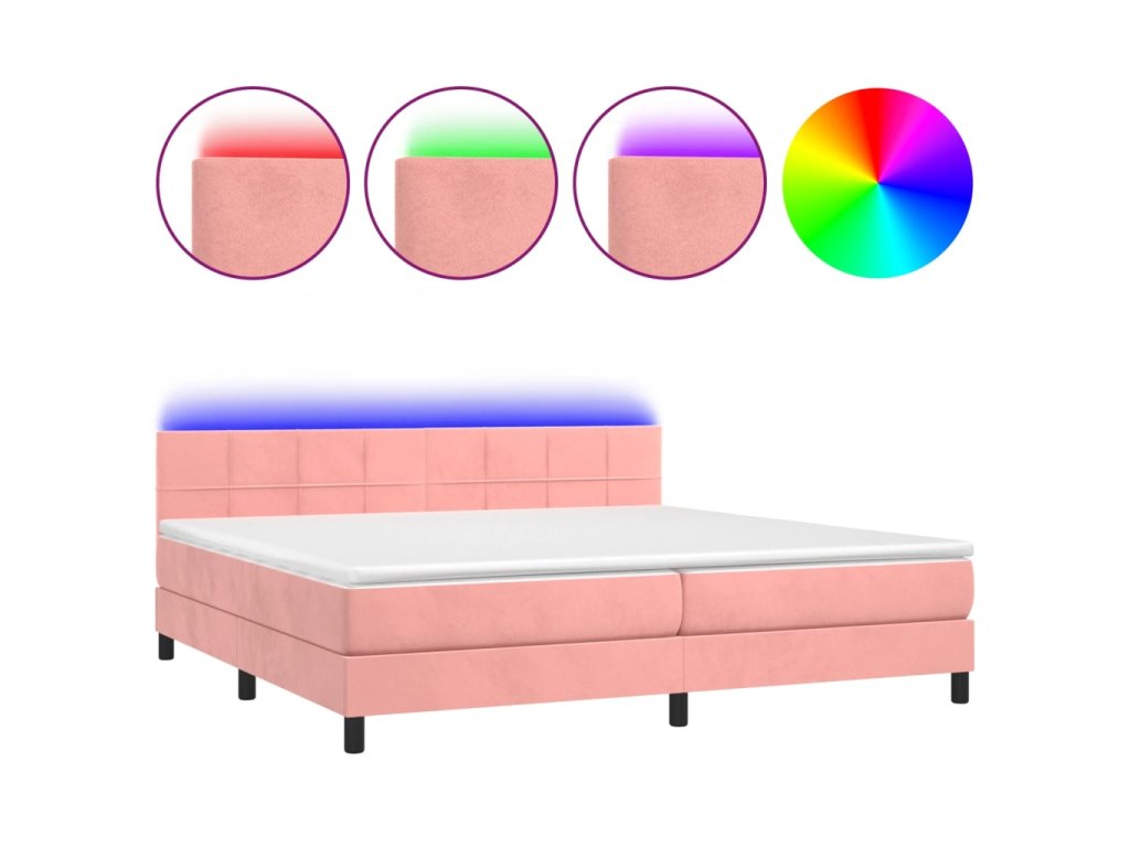 vidaXL Posteľný rám boxsping s matracom a LED ružový 200x200 cm zamat