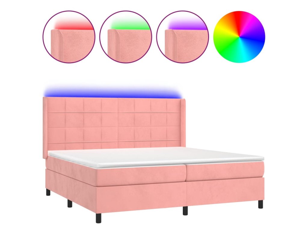 vidaXL Posteľný rám boxsping s matracom a LED ružový 200x200 cm zamat