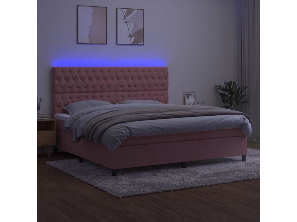 vidaXL Posteľný rám boxsping s matracom a LED ružový 200x200 cm zamat