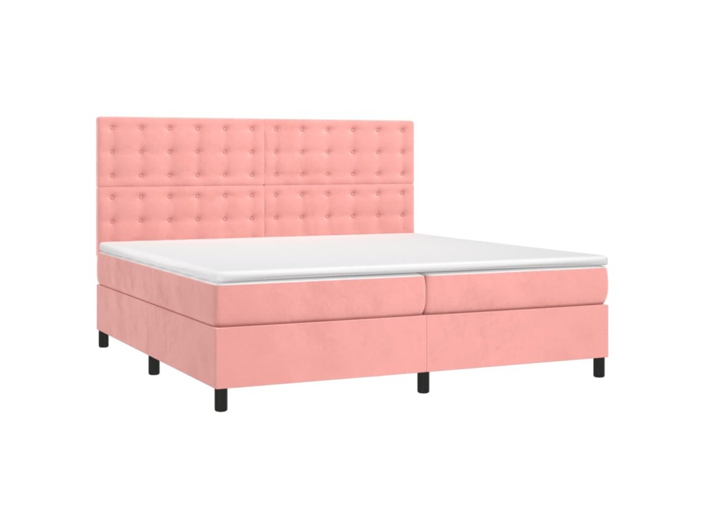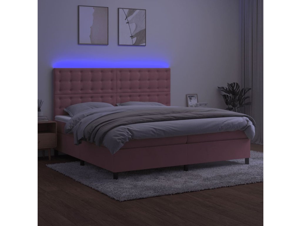 vidaXL Posteľný rám boxsping s matracom a LED ružový 200x200 cm zamat