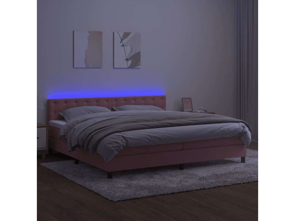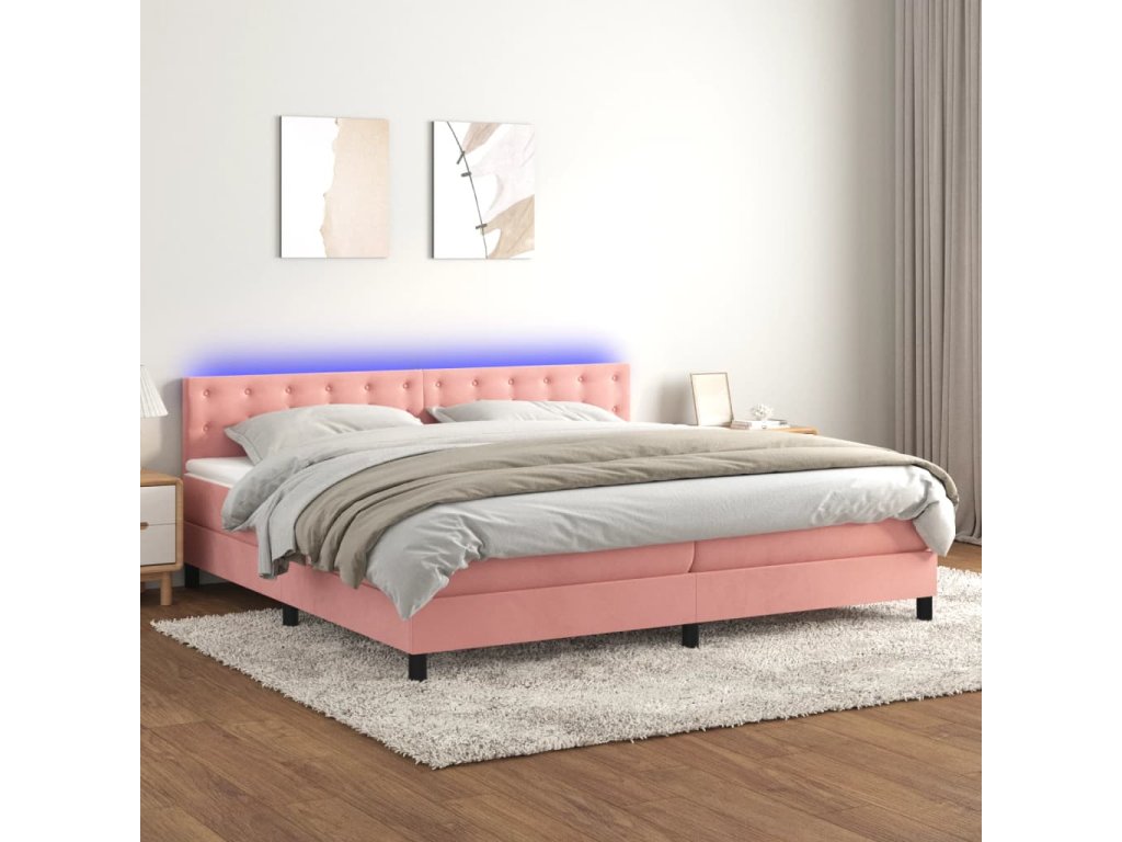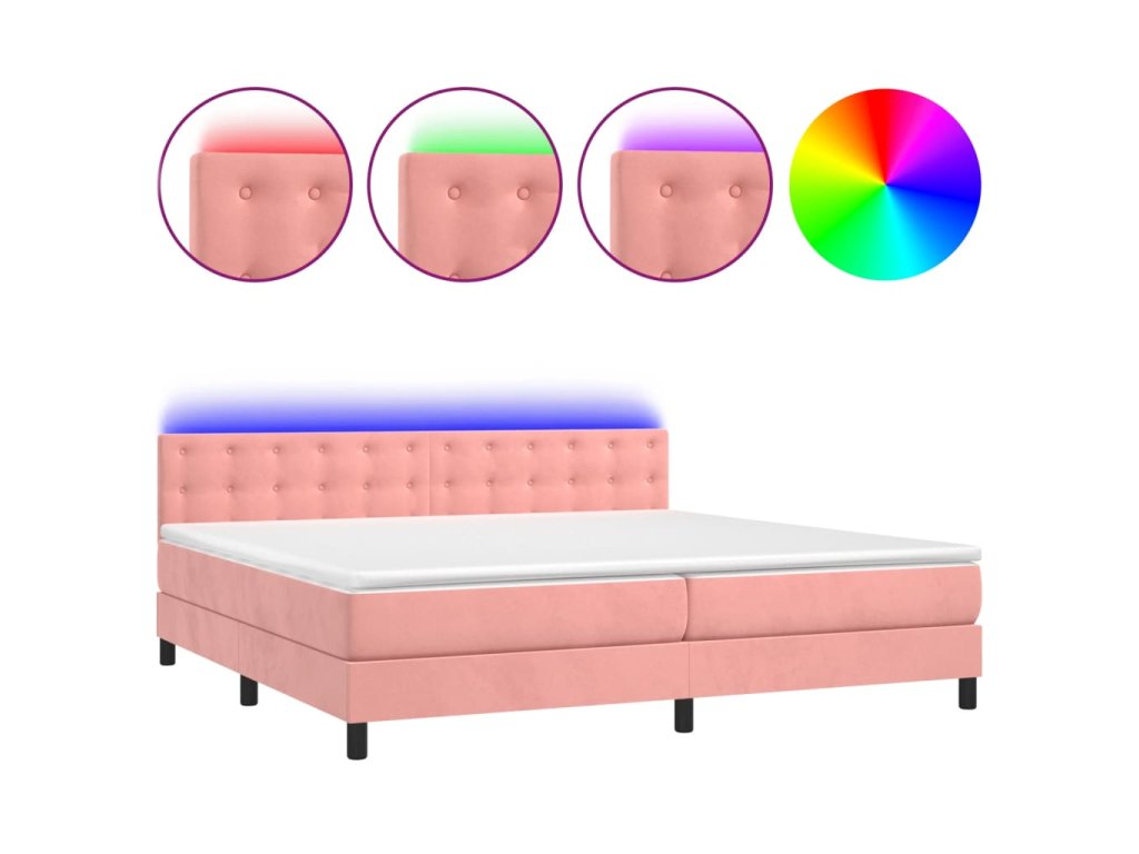 vidaXL Posteľný rám boxsping s matracom a LED ružový 200x200 cm zamat