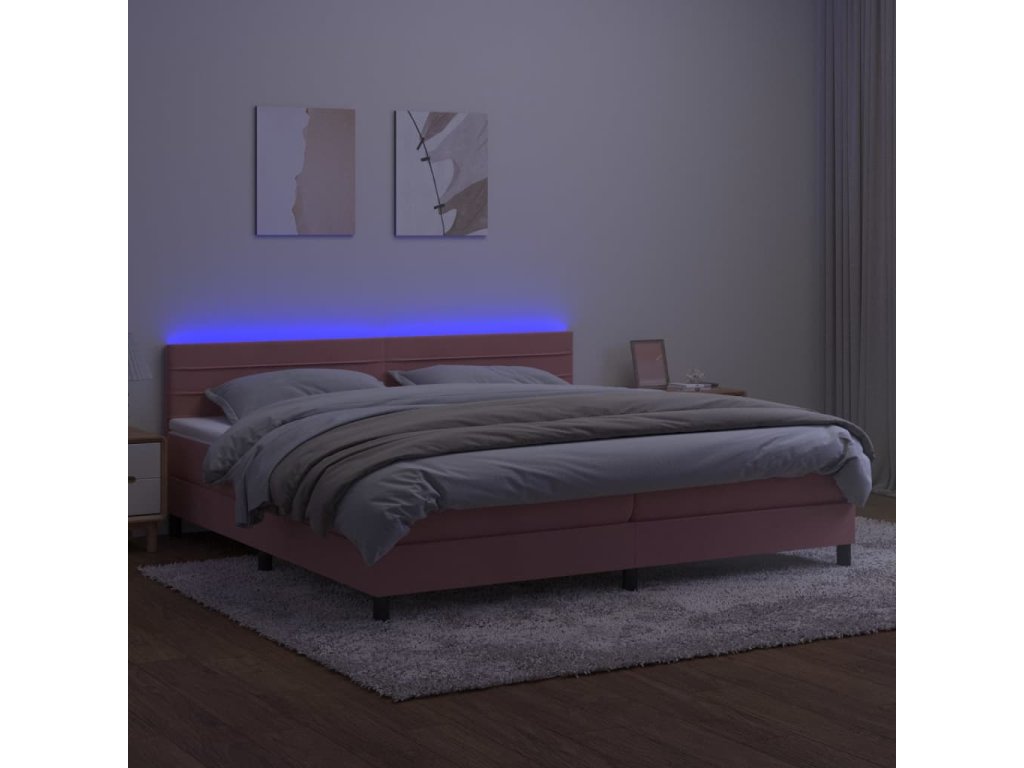 vidaXL Posteľný rám boxsping s matracom a LED ružový 200x200 cm zamat