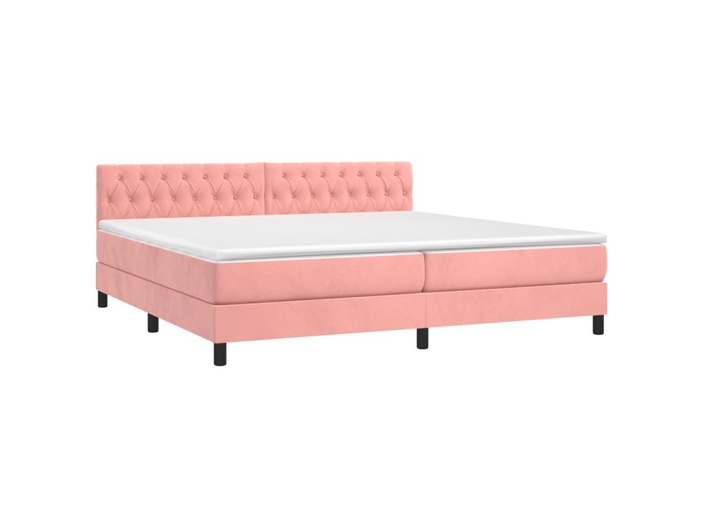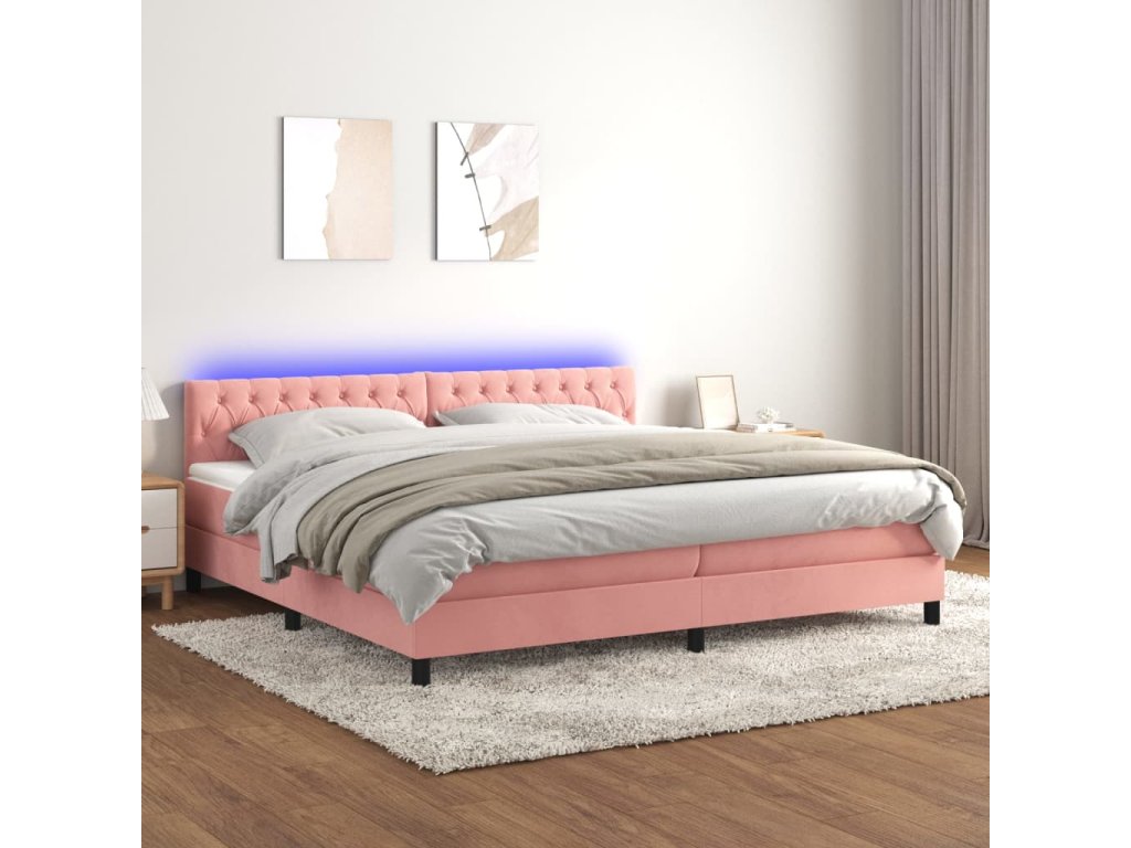 vidaXL Posteľný rám boxsping s matracom a LED ružový 200x200 cm zamat