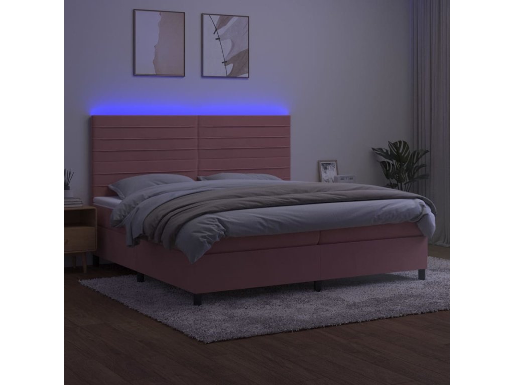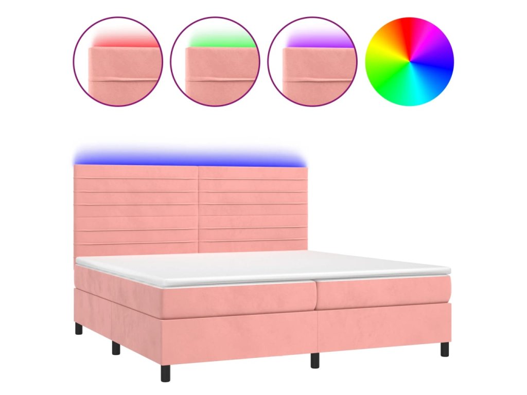 vidaXL Posteľný rám boxsping s matracom a LED ružový 200x200 cm zamat
