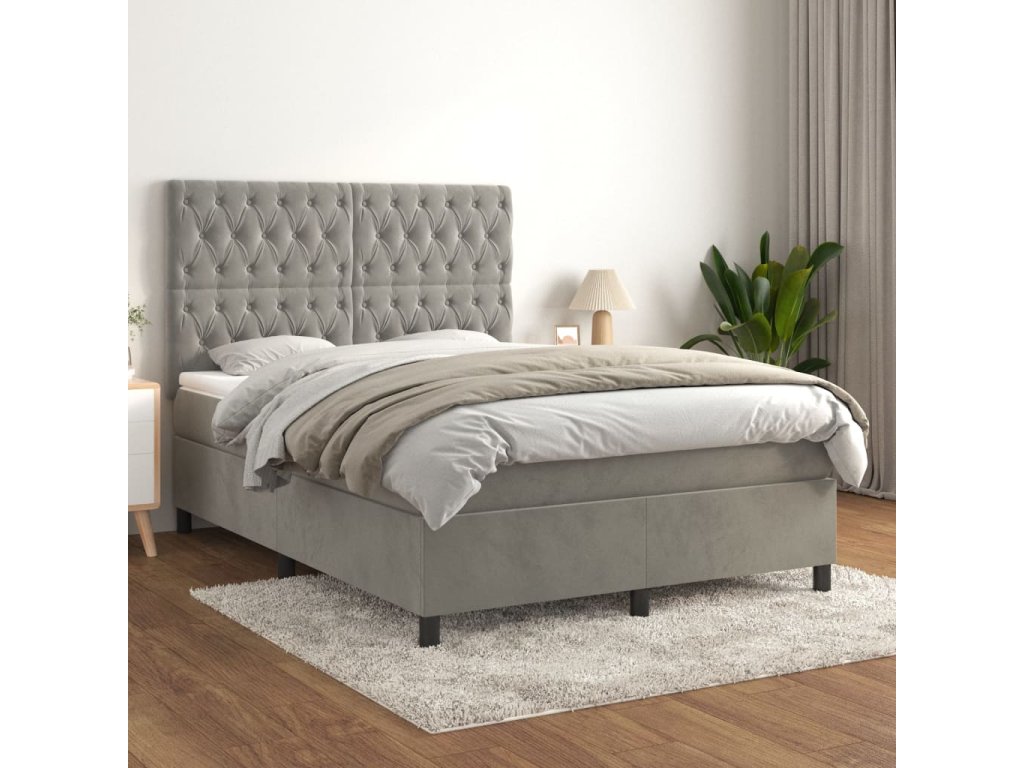 vidaXL Posteľný rám boxsping s matracom bledosivý 140x190 cm zamat