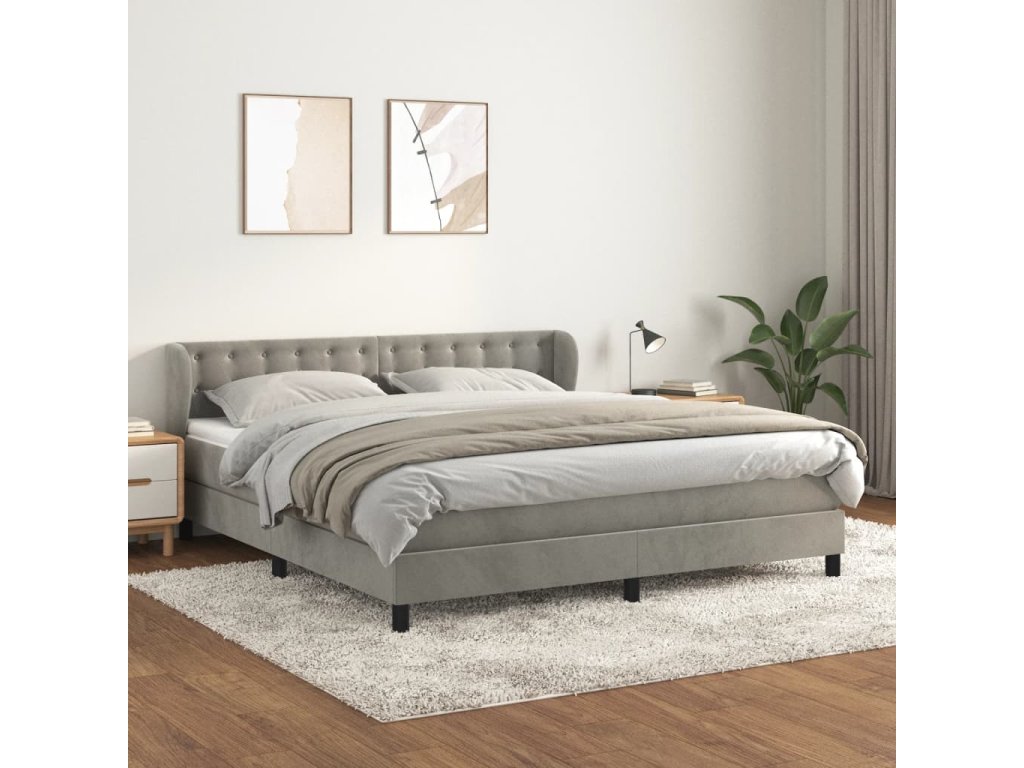 vidaXL Posteľný rám boxsping s matracom bledosivý 180x200 cm zamat