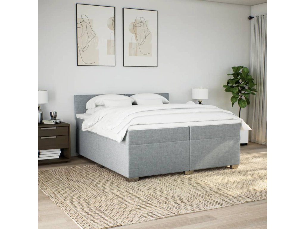 vidaXL Posteľný rám boxsping s matracom bledosivý 200x200 cm látka
