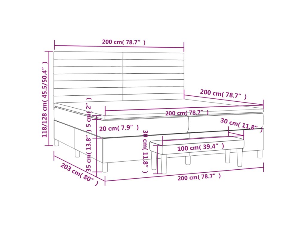 - Rozmery: 203 x 200 x 118/128 cm (D x Š x V)