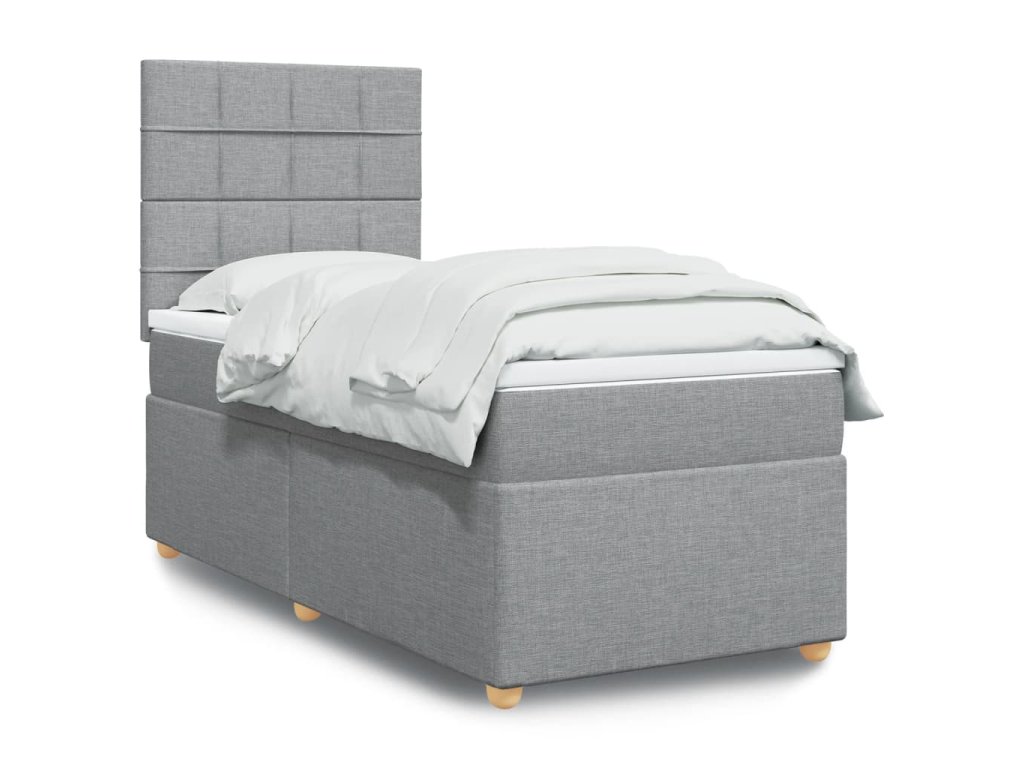 vidaXL Posteľný rám boxsping s matracom bledosivý 90x190 cm látka