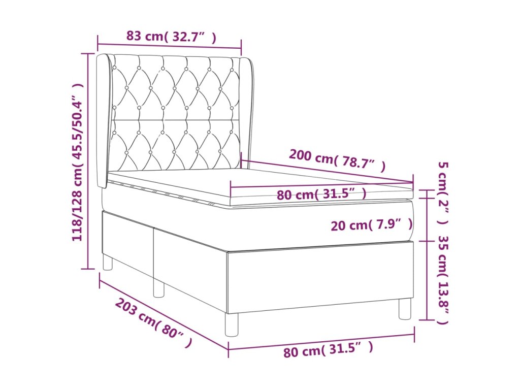 vidaXL Posteľný rám boxsping s matracom hnedý 80x200 cm látka