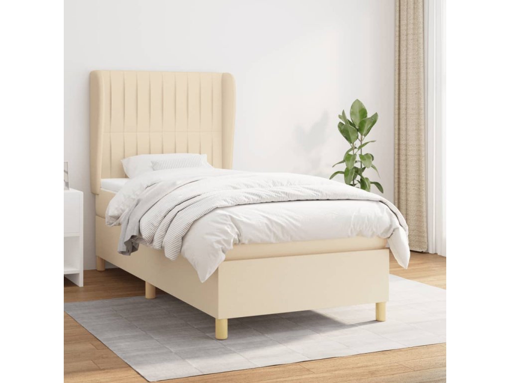 vidaXL Posteľný rám boxsping s matracom krémový 80x200 cm látka