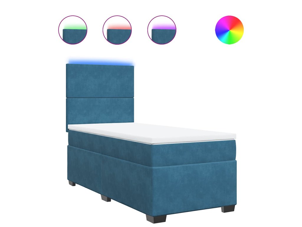 vidaXL Posteľný rám boxsping s matracom modrá 100x200 cm zamat
