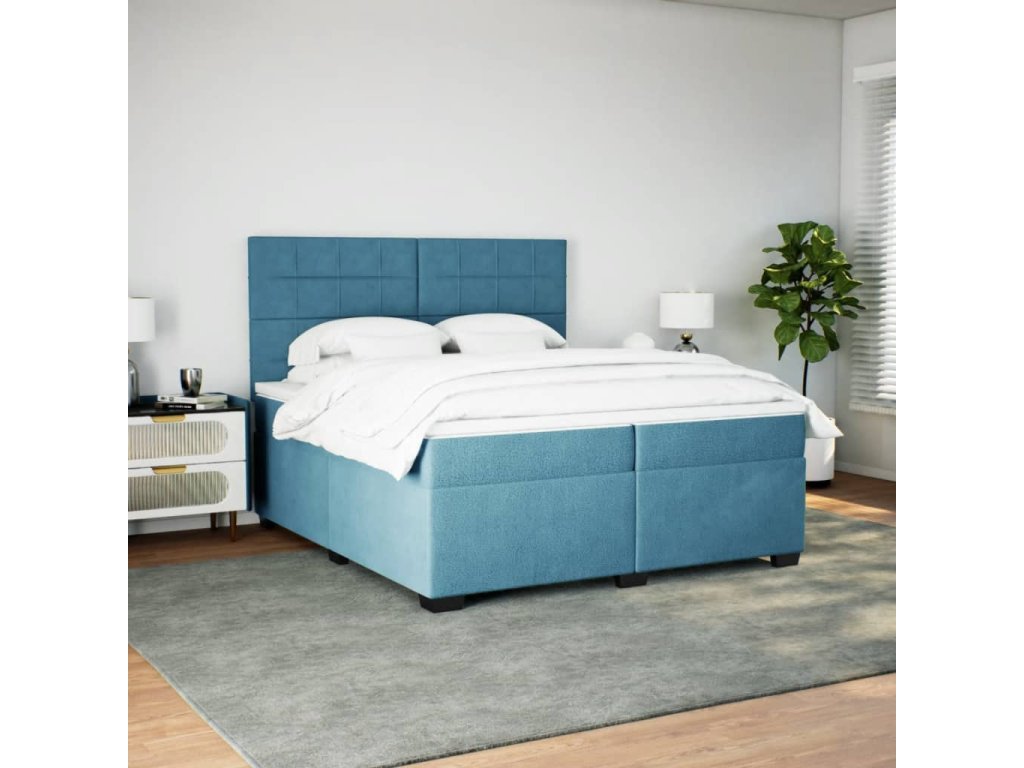 vidaXL Posteľný rám boxsping s matracom modrá 200x200 cm zamat