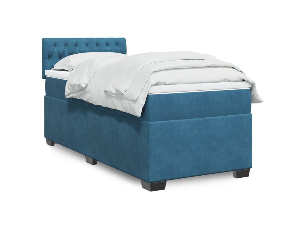 vidaXL Posteľný rám boxsping s matracom modrá 90x190 cm zamat