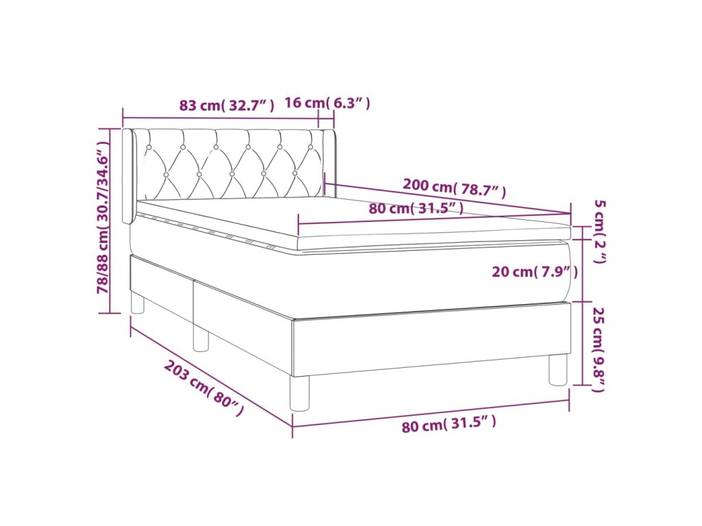 vidaXL Posteľný rám boxsping s matracom modrý 80x200 cm látka