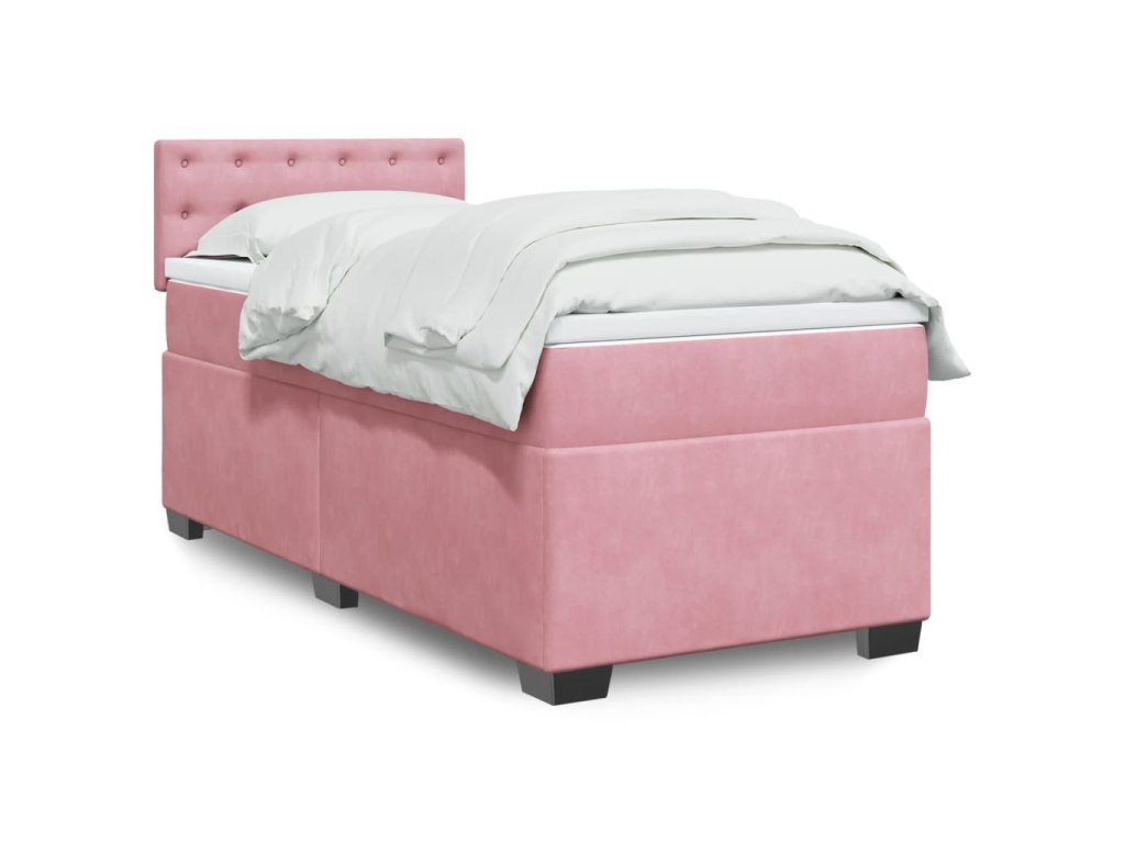 vidaXL Posteľný rám boxsping s matracom ružový 100x200 cm zamat