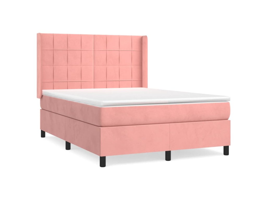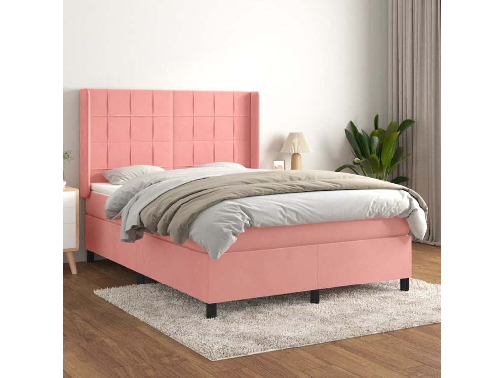 vidaXL Posteľný rám boxsping s matracom ružový 140x190 cm zamat