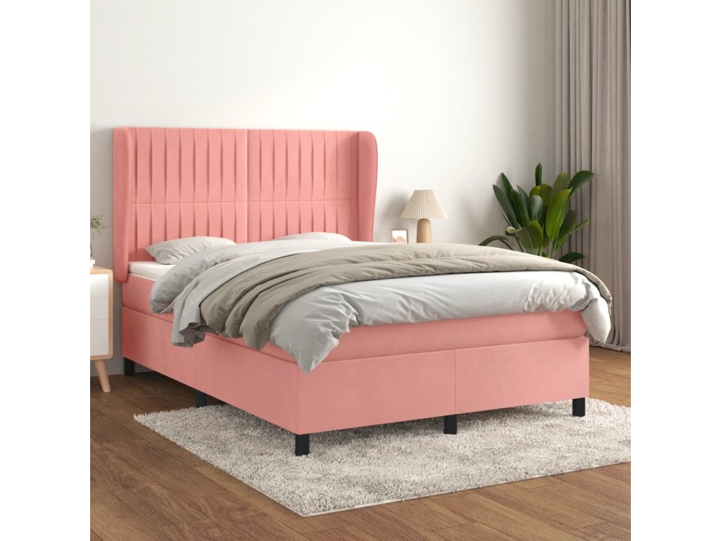 vidaXL Posteľný rám boxsping s matracom ružový 140x190 cm zamat