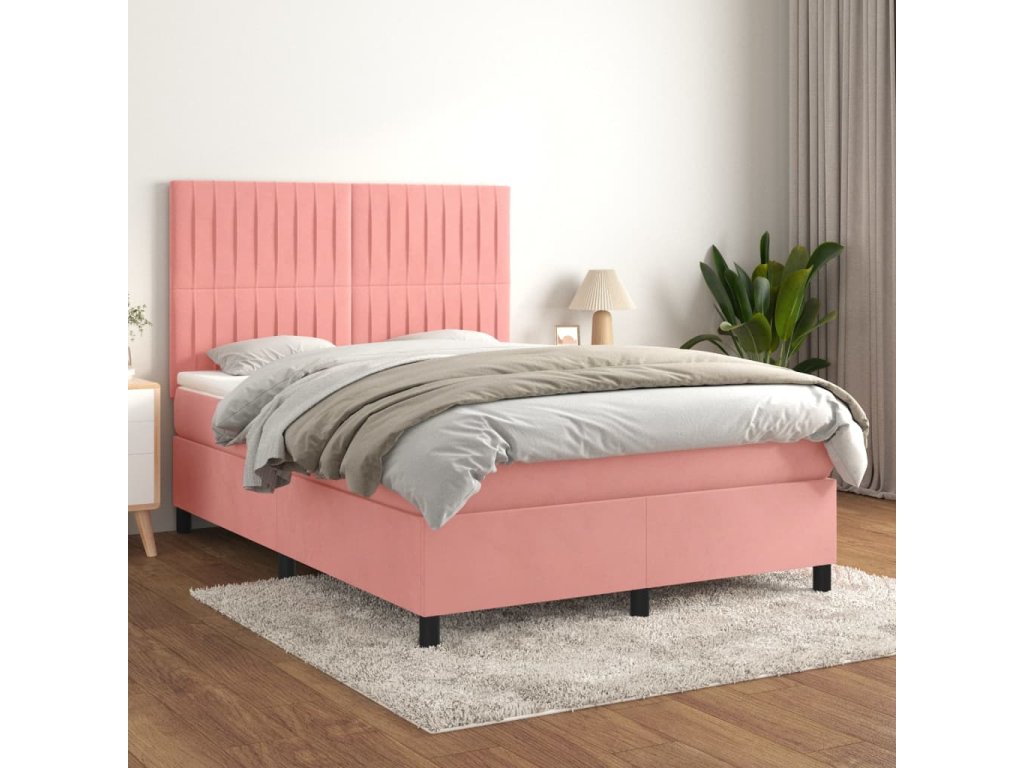 vidaXL Posteľný rám boxsping s matracom ružový 140x190 cm zamat