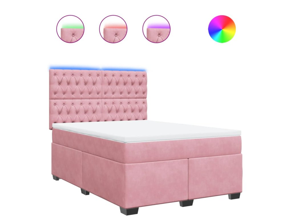 vidaXL Posteľný rám boxsping s matracom ružový 140x190 cm zamat