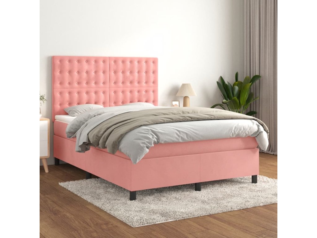 vidaXL Posteľný rám boxsping s matracom ružový 140x200 cm zamat