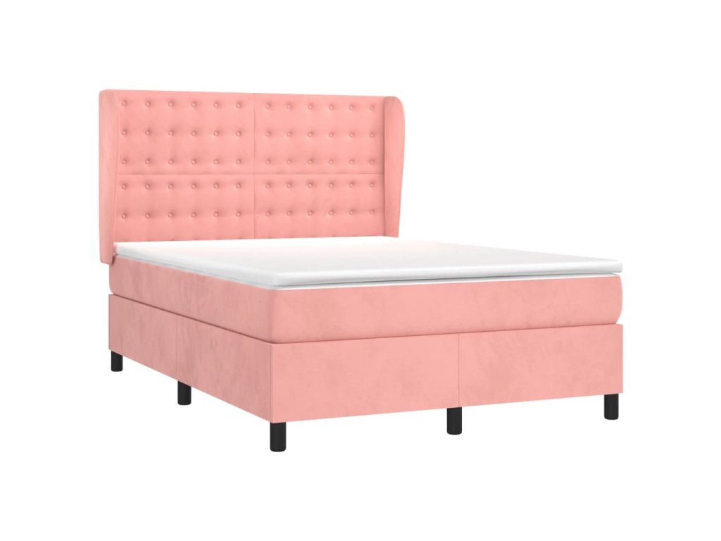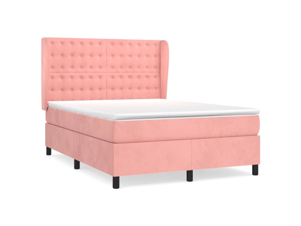 vidaXL Posteľný rám boxsping s matracom ružový 140x200 cm zamat
