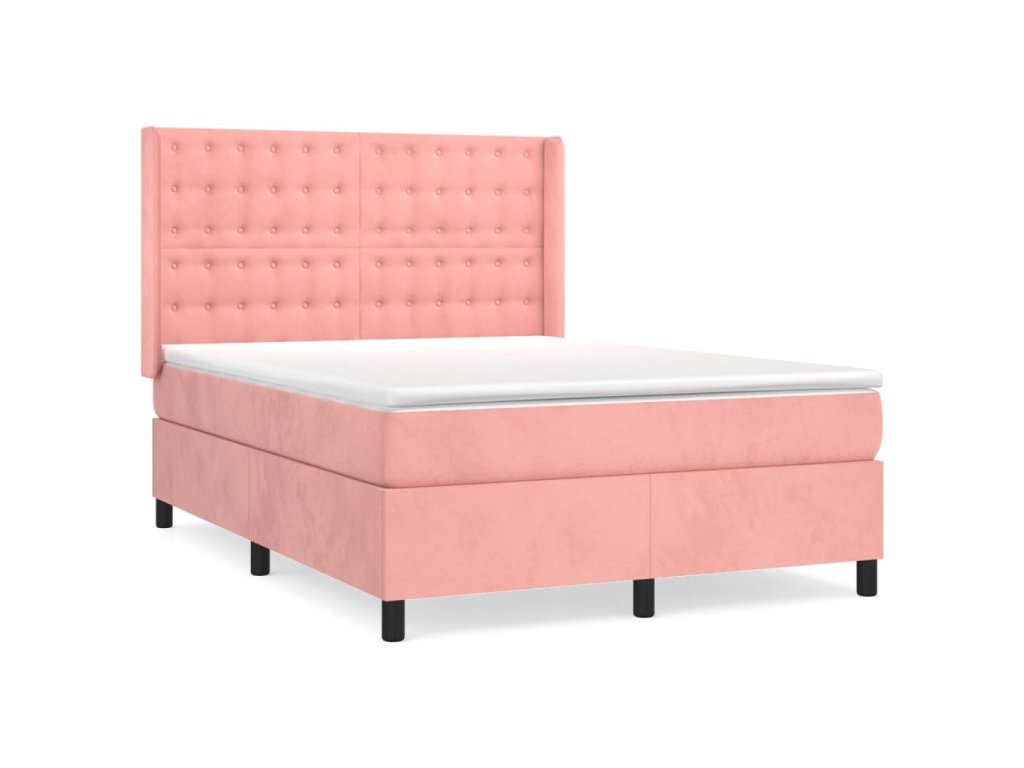 vidaXL Posteľný rám boxsping s matracom ružový 140x200 cm zamat