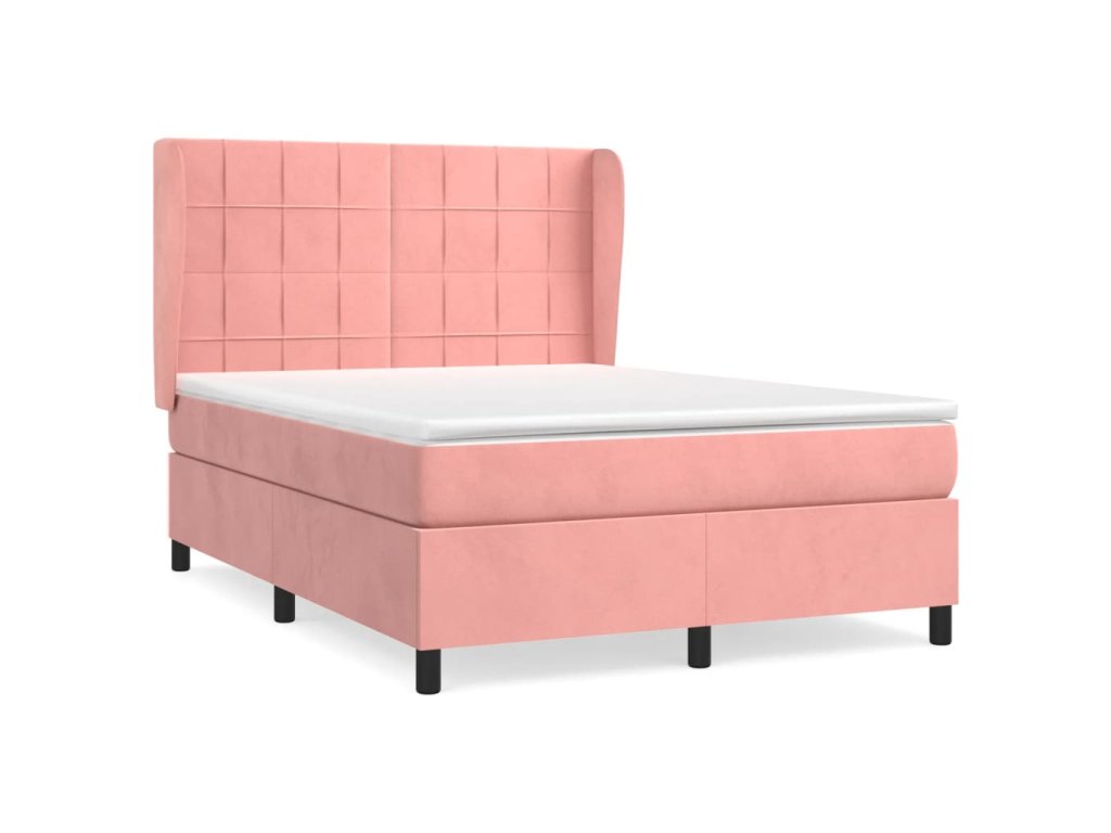 vidaXL Posteľný rám boxsping s matracom ružový 140x200 cm zamat