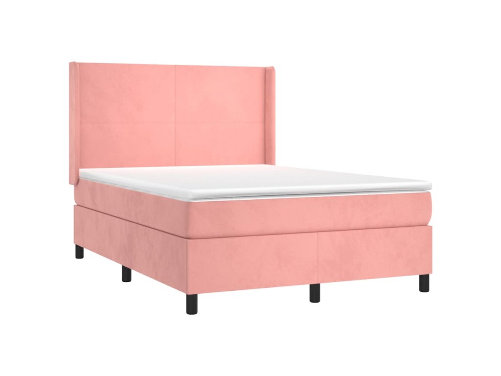 vidaXL Posteľný rám boxsping s matracom ružový 140x200 cm zamat