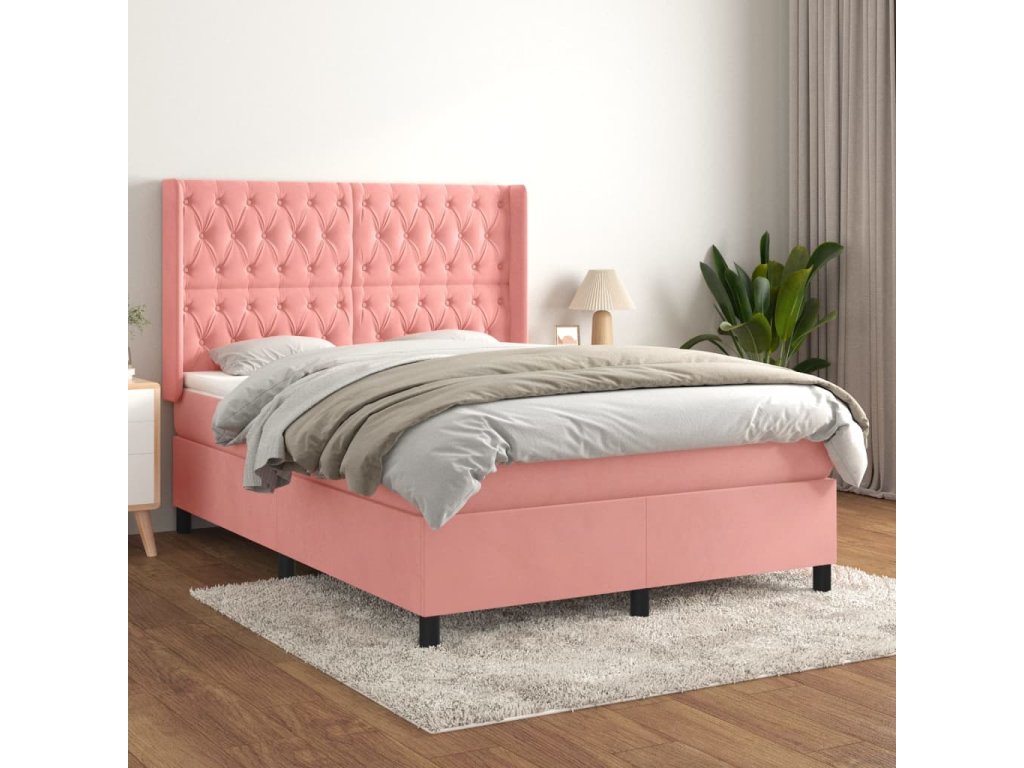 vidaXL Posteľný rám boxsping s matracom ružový 140x200 cm zamat