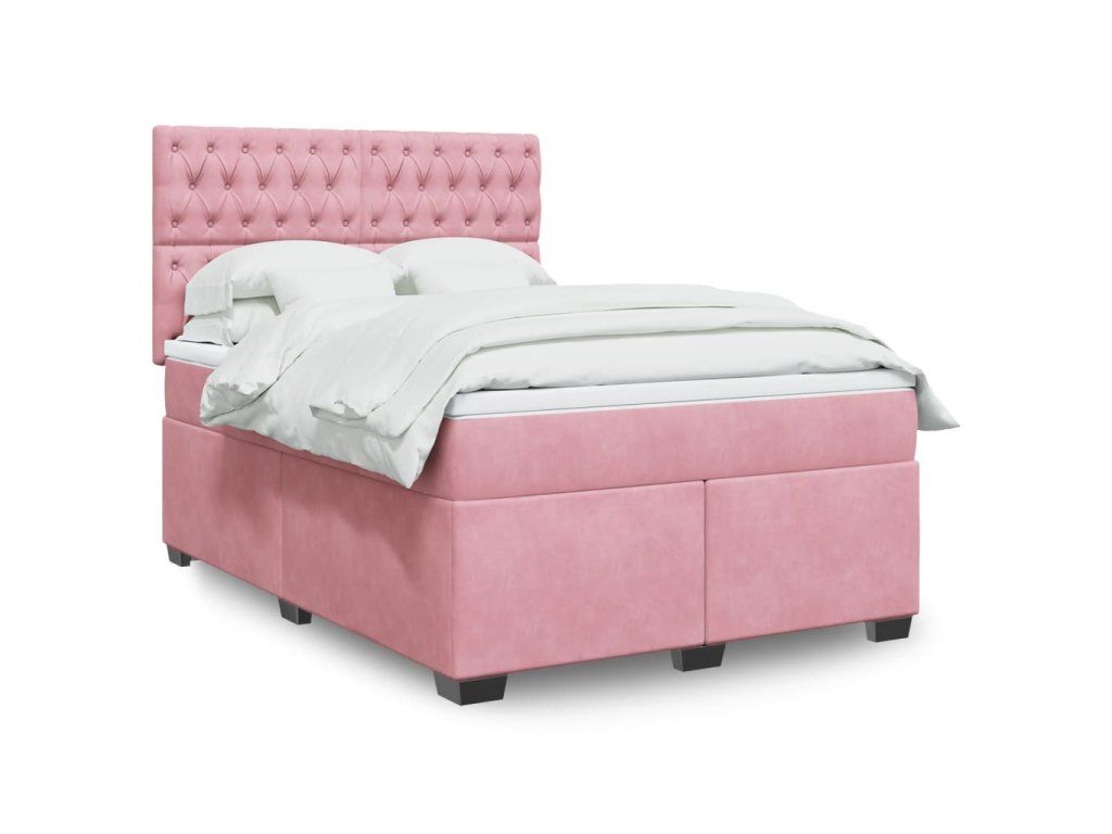 vidaXL Posteľný rám boxsping s matracom ružový 140x200 cm zamat