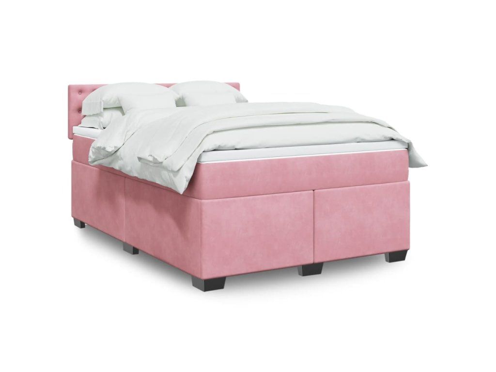 vidaXL Posteľný rám boxsping s matracom ružový 140x200 cm zamat