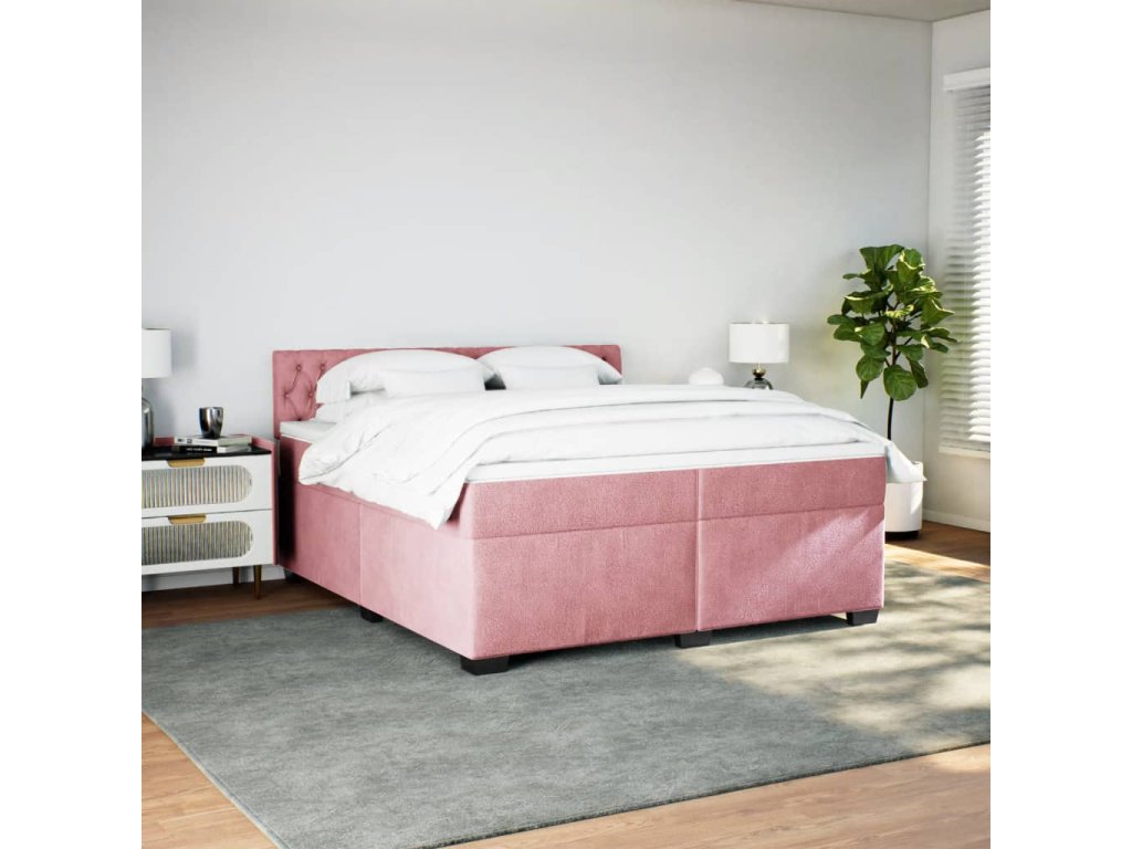 vidaXL Posteľný rám boxsping s matracom ružový200x200 cm zamat