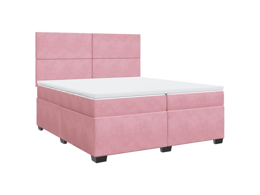 vidaXL Posteľný rám boxsping s matracom ružový200x200 cm zamat