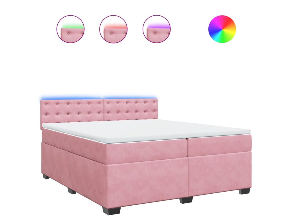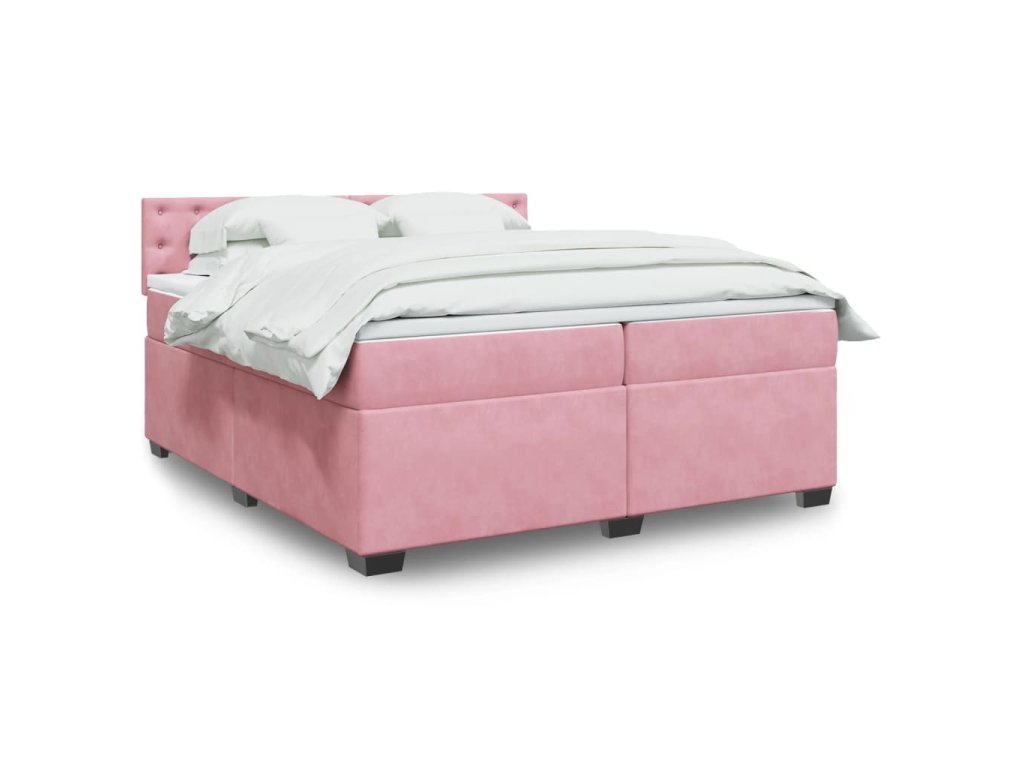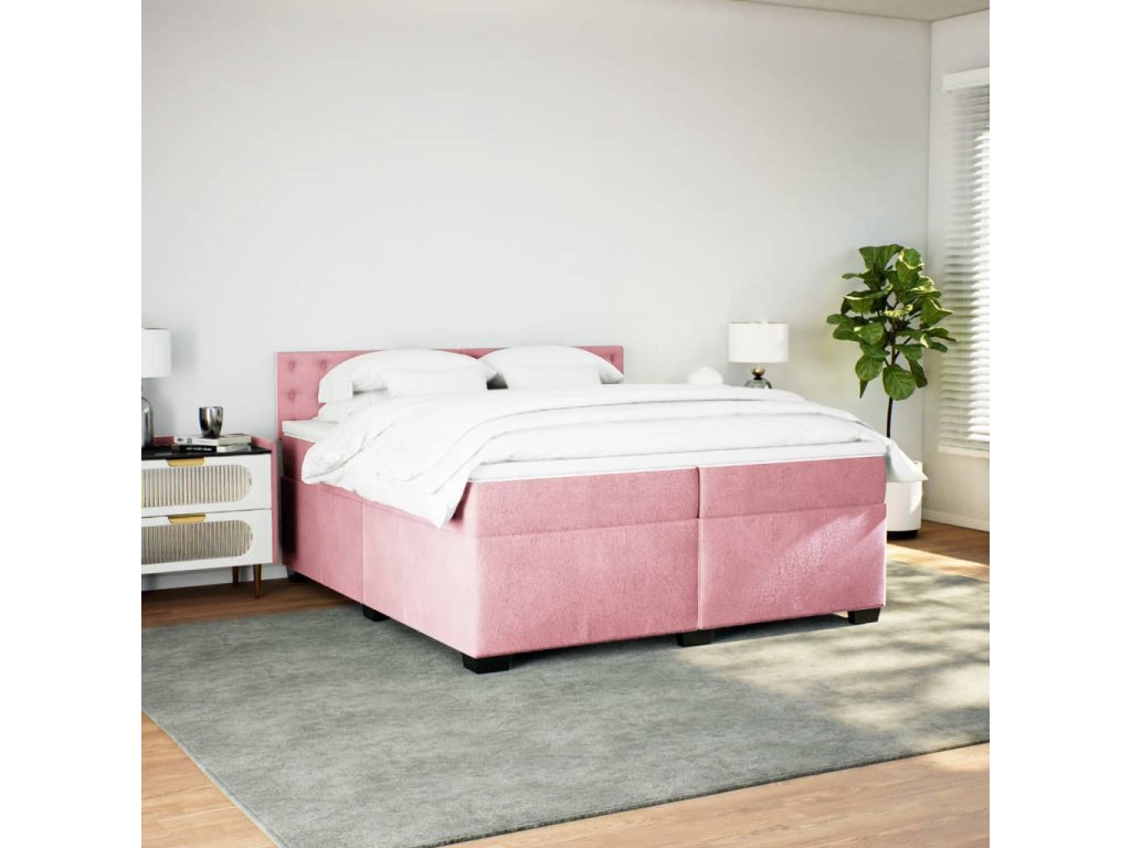 vidaXL Posteľný rám boxsping s matracom ružový200x200 cm zamat