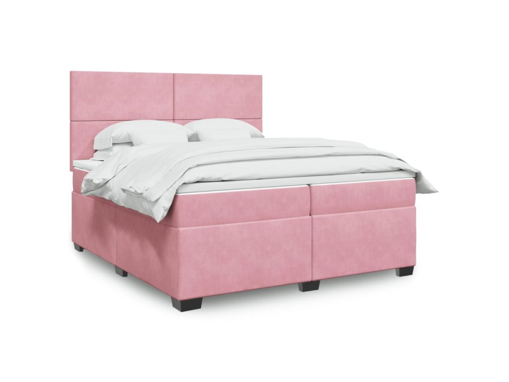 vidaXL Posteľný rám boxsping s matracom ružový200x200 cm zamat