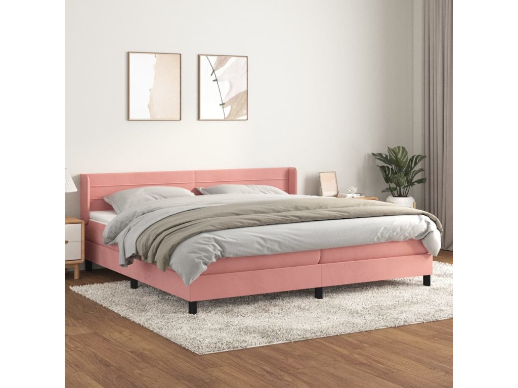 vidaXL Posteľný rám boxsping s matracom ružový200x200 cm zamat