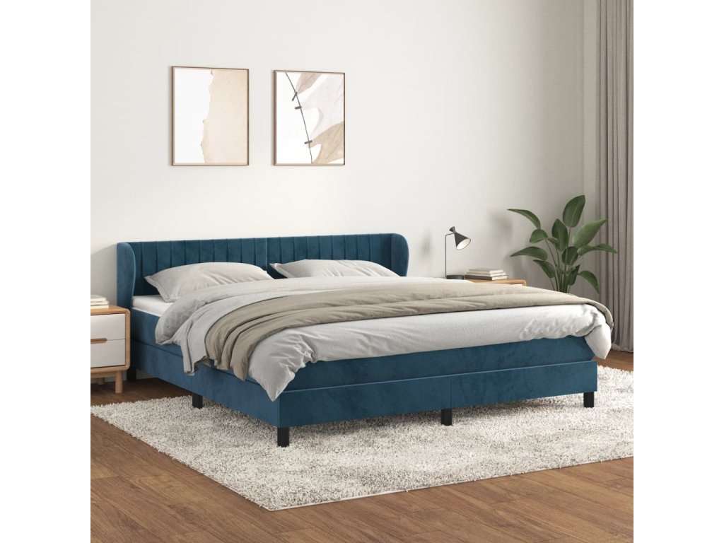 vidaXL Posteľný rám boxsping s matracom tmavomodrý 160x200 cm zamat