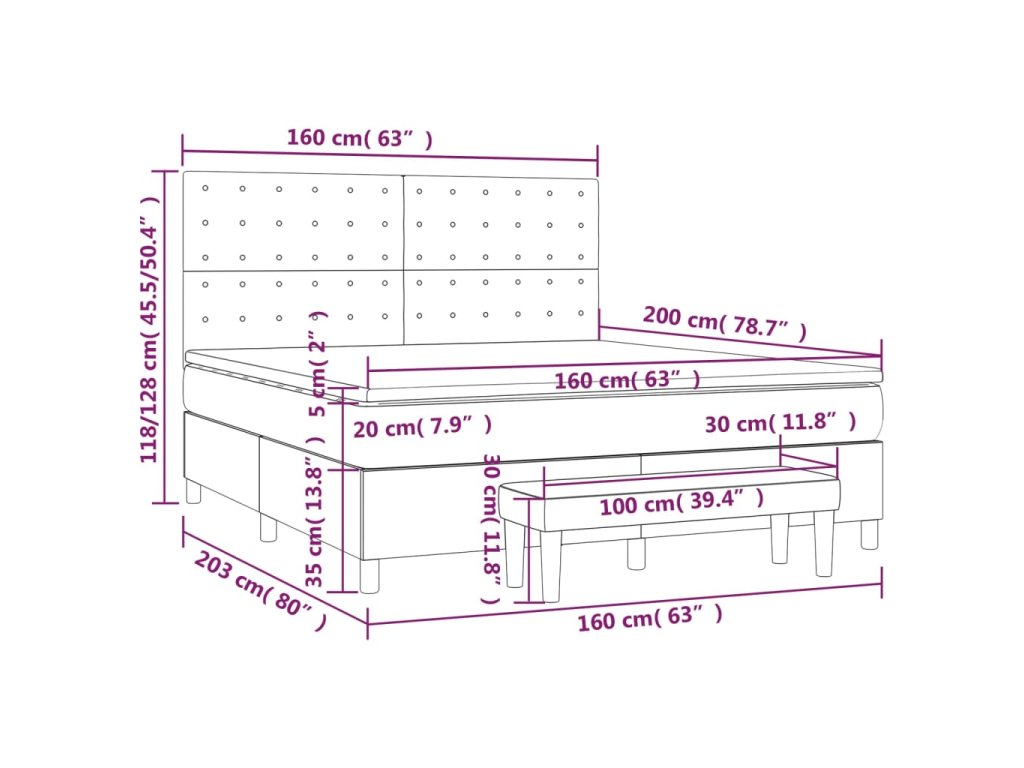 - Rozmery: 203 x 160 x 118/128 cm (D x Š x V)