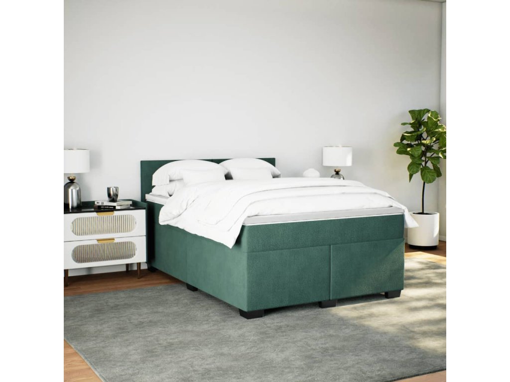 vidaXL Posteľný rám boxsping s matracom tmavozelený 140x190 cm zamat
