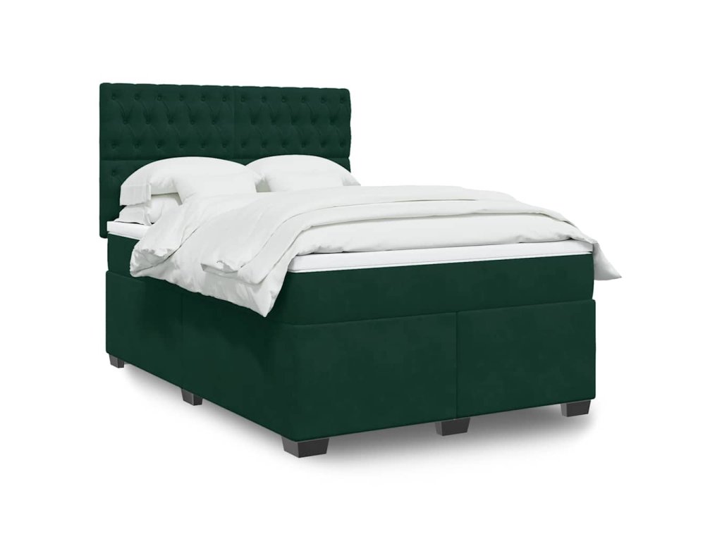 vidaXL Posteľný rám boxsping s matracom tmavozelený 140x190 cm zamat