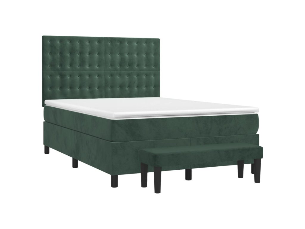 vidaXL Posteľný rám boxsping s matracom tmavozelený 140x200 cm zamat