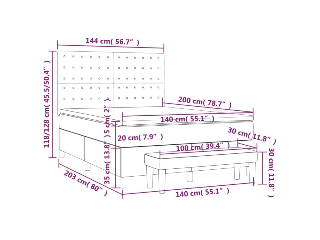 - Rozmery: 203 x 144 x 118/128 cm (D x Š x V)