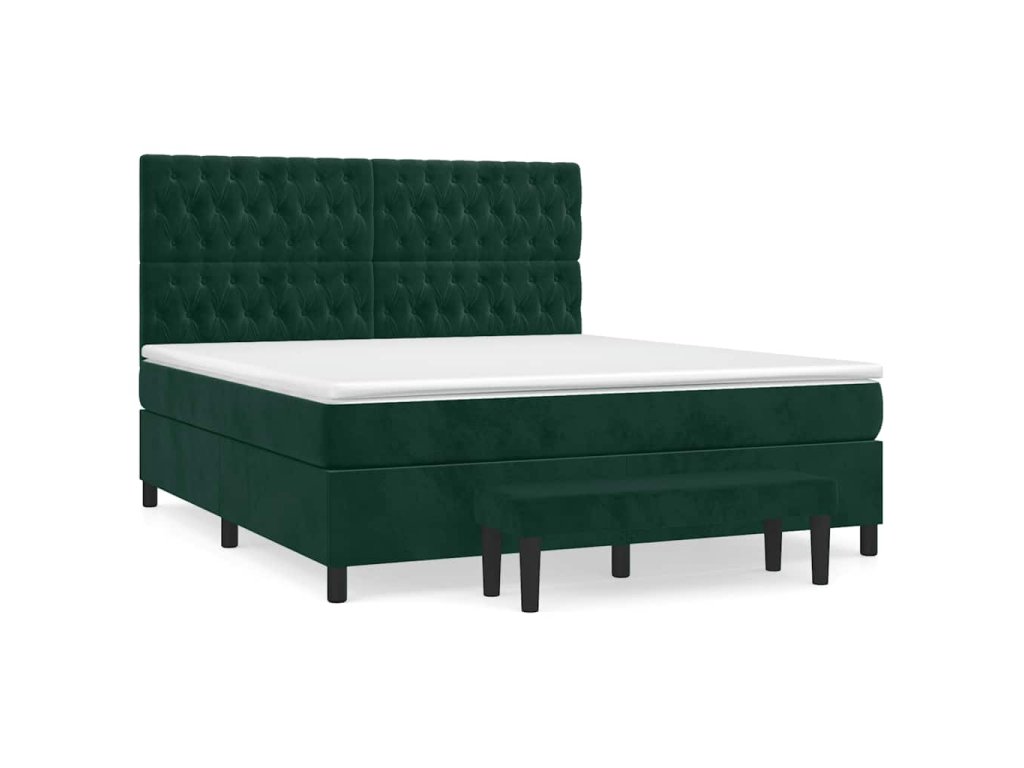 vidaXL Posteľný rám boxsping s matracom tmavozelený 180x200 cm zamat