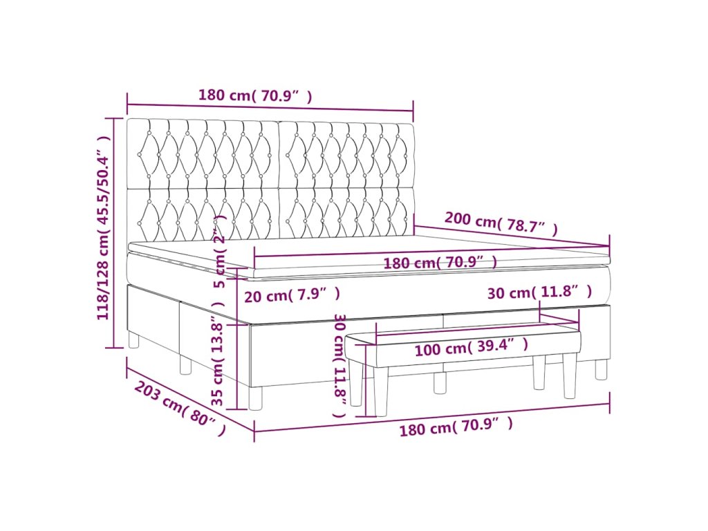- Rozmery: 203 x 180 x 118/128 cm (D x Š x V)